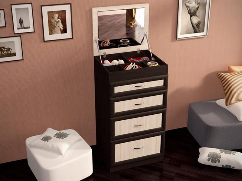 Комоды обычно используются для хранения нижнего белья, полотенец и детских вещей. Также комод удобно использовать в качестве подставки под телевизор или как туалетный столик. Некоторые модели идут в комплекте с зеркалом, что очень удобно для малогабаритных комнат, ведь тогда комод будет выполнять еще и функцию трюмо.