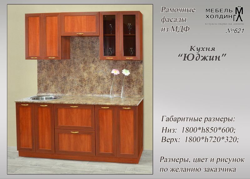 Комплектация: рамка квадрат итальянский орех, мойка круглая врезная без крыла, 100% направляющие, ручка скоба золото, стекло бронза, сушка стандарт, газлифт 2 шт., столешница и стеновая панель Альмандин 139М