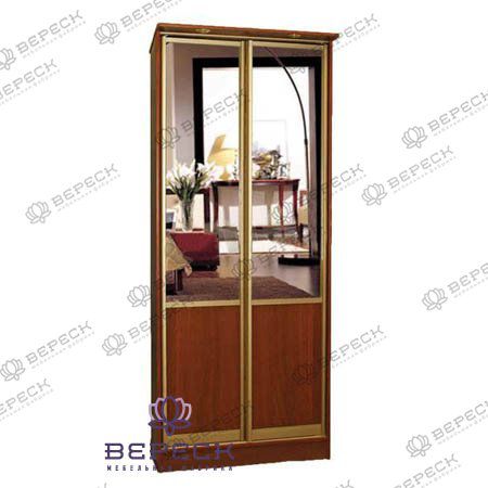 Отличительная черта шкафа - декоративная отделка резных элементов "под золото", мягкая подсветка в витринах. Изготовлен из массива березы со вставками шпона ценных пород древесины - карельской березы. Отделка - лакокрасочные материалы импортного производства, повышающие светостойкость поверхности, гладкость, устойчивость к царапинам, воздействию растворителей и влаги.